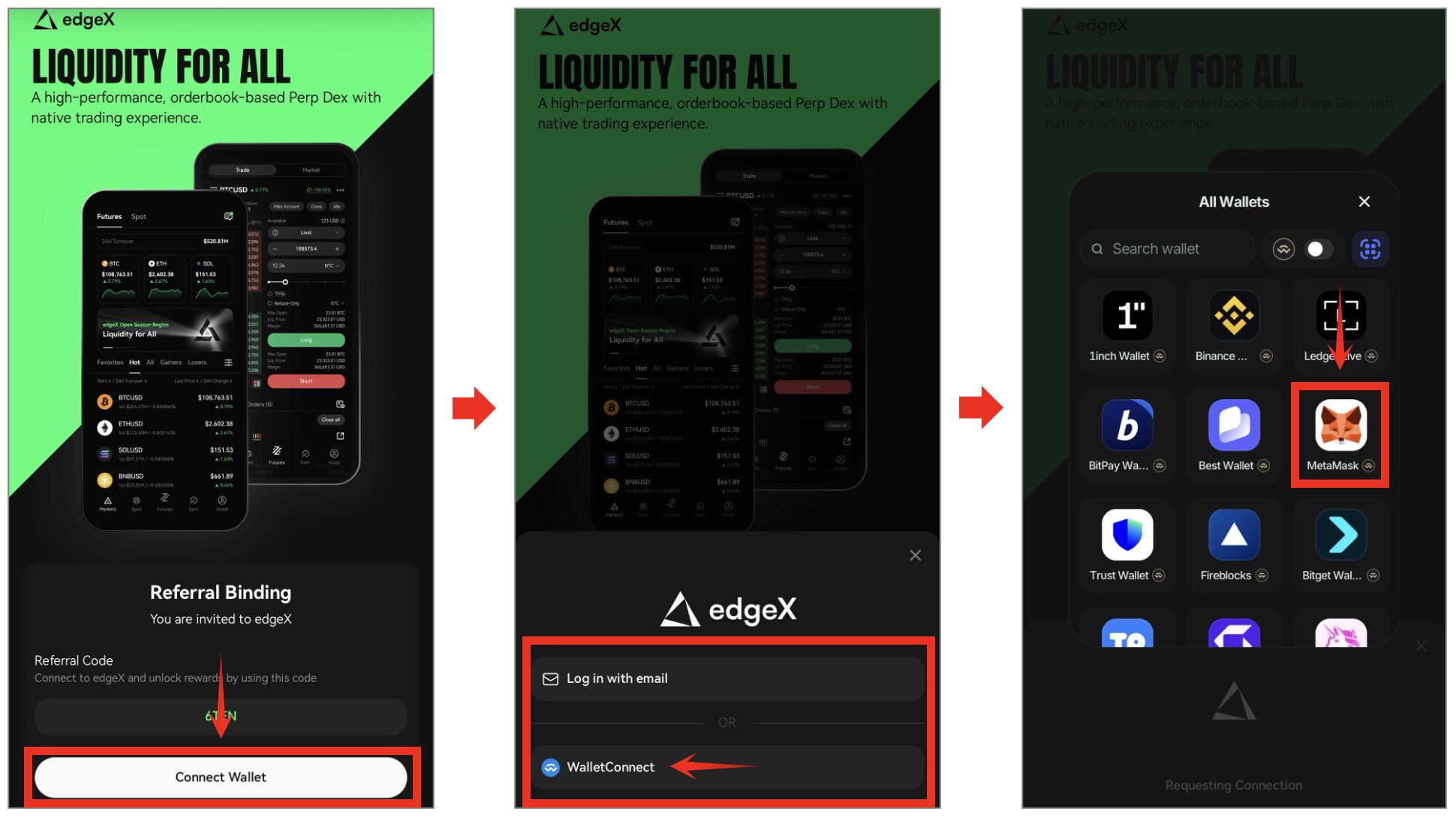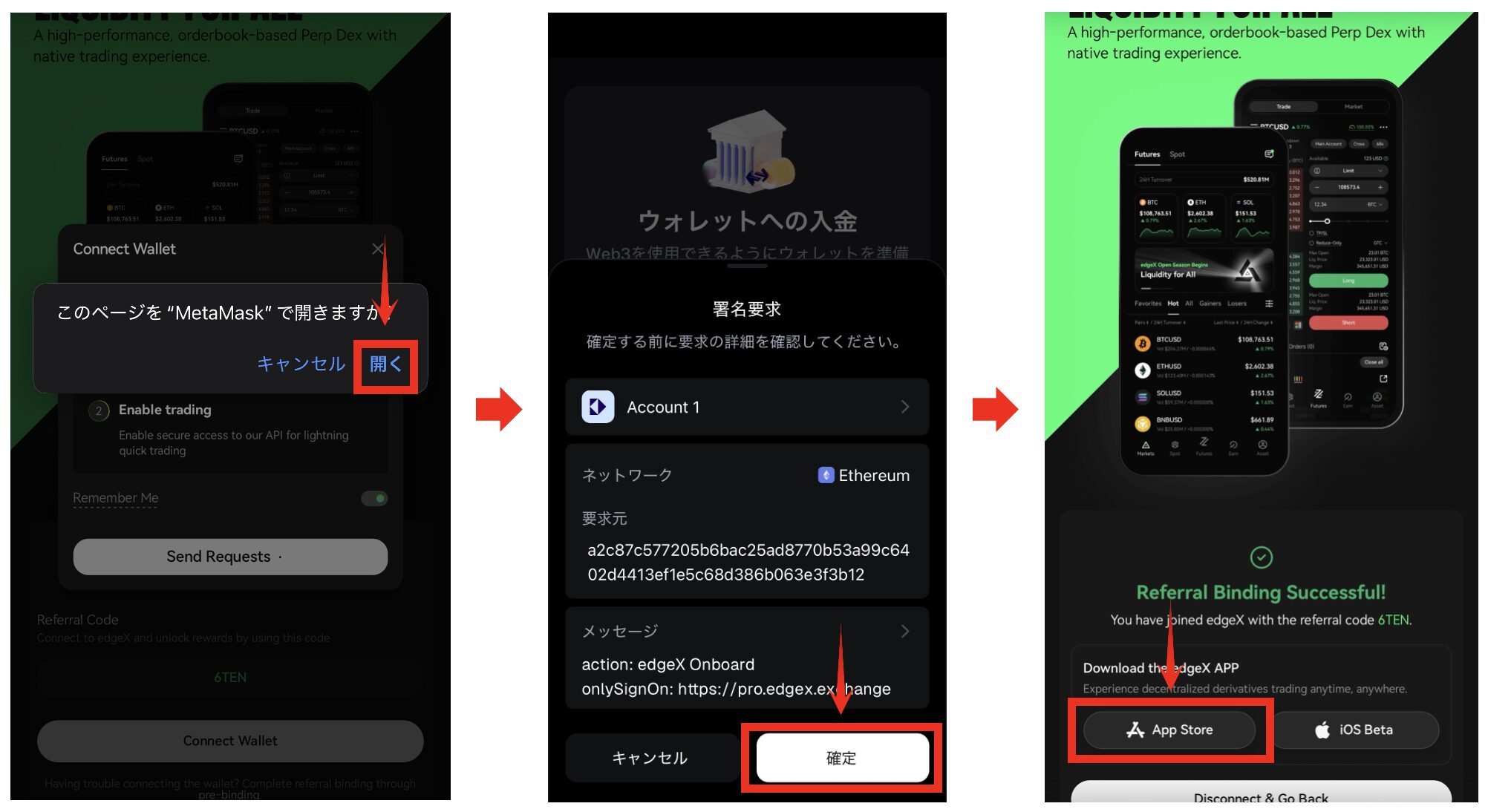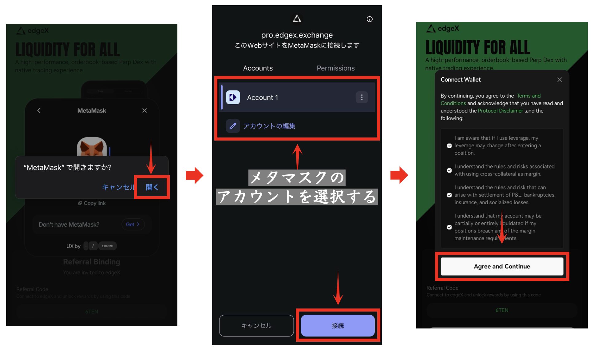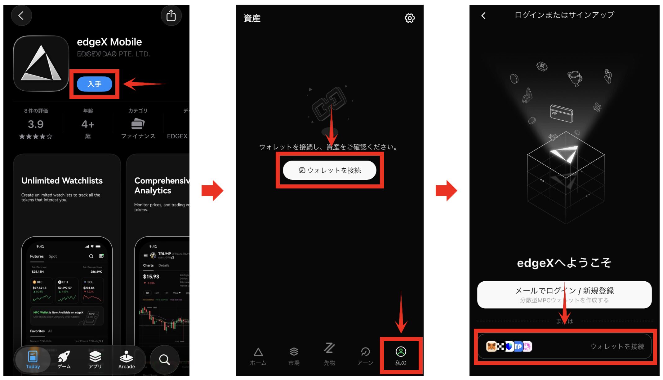 edgeXは、ウォレット接続またはメールアドレス登録で簡単に始められる暗号資産取引所のようにトレードができる次世代型DEXです。