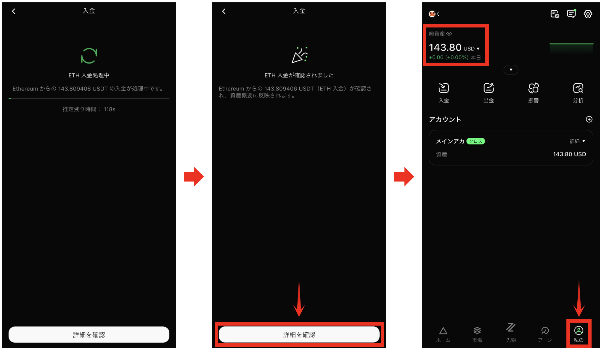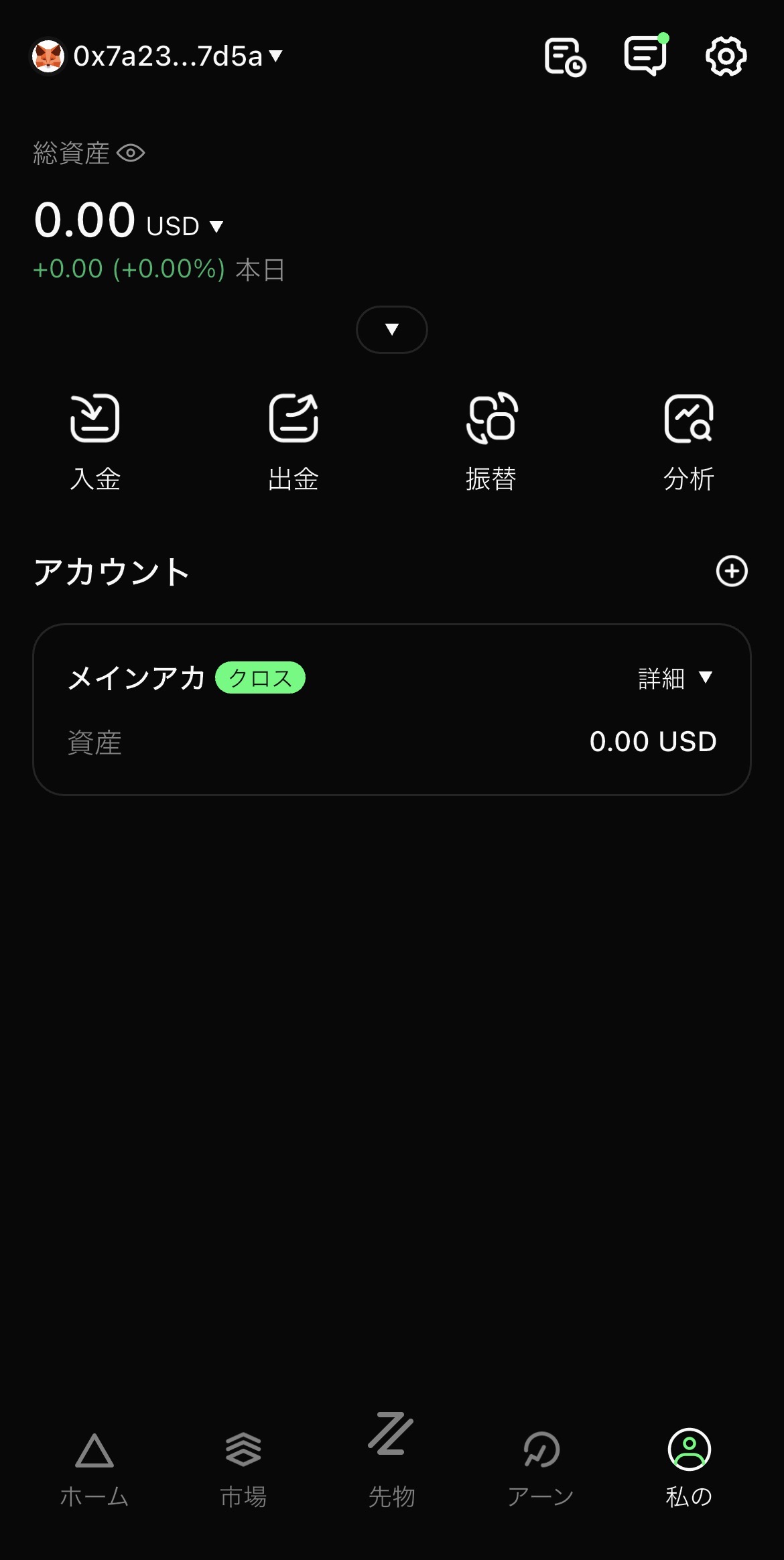 - 私のをすると入金した資産が上部に表示されます。