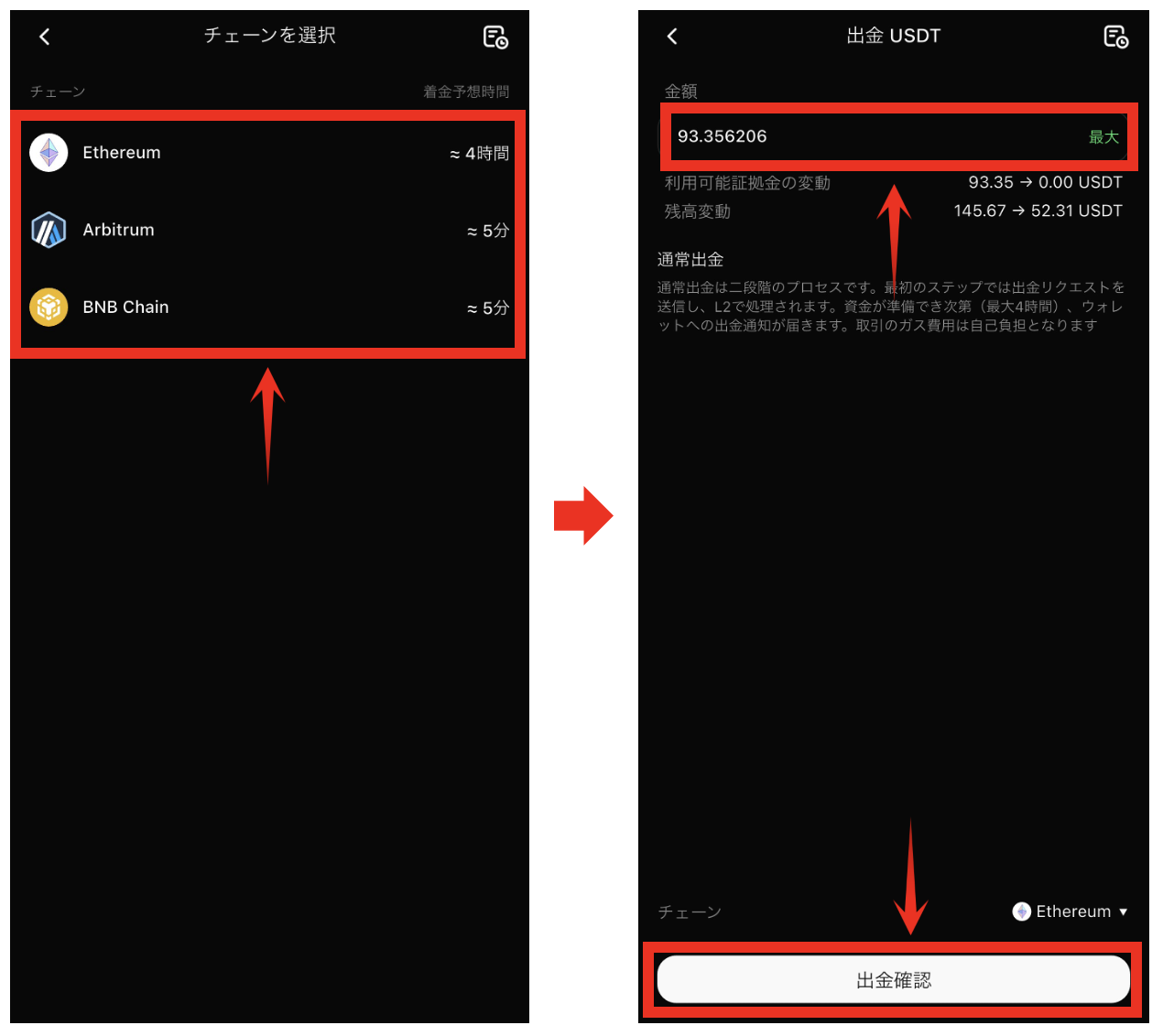 - 出金したいチェーンを選択します。