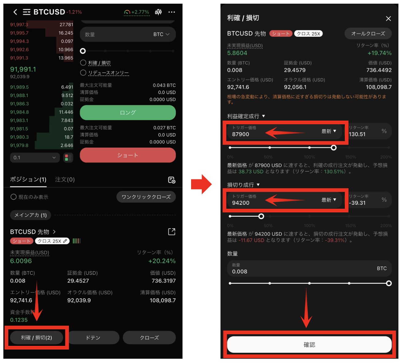 - 利確と損切りしたい価格をそれぞれ入力します。