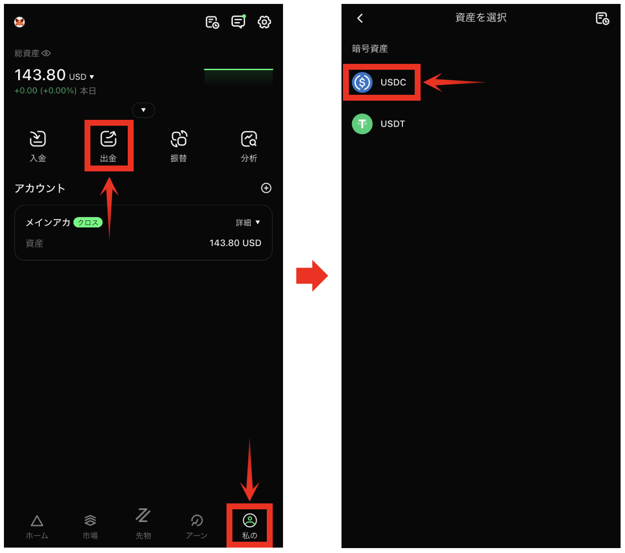 - 出金をタップします。