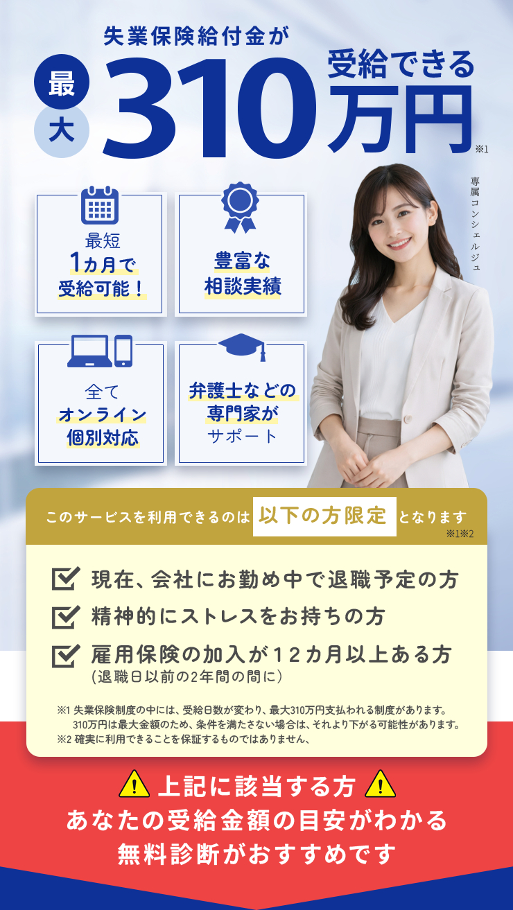 LINEを使った無料相談や受給額診断も可能になっていて、退職前の段階で自分の状況を整理したい人に使われています。