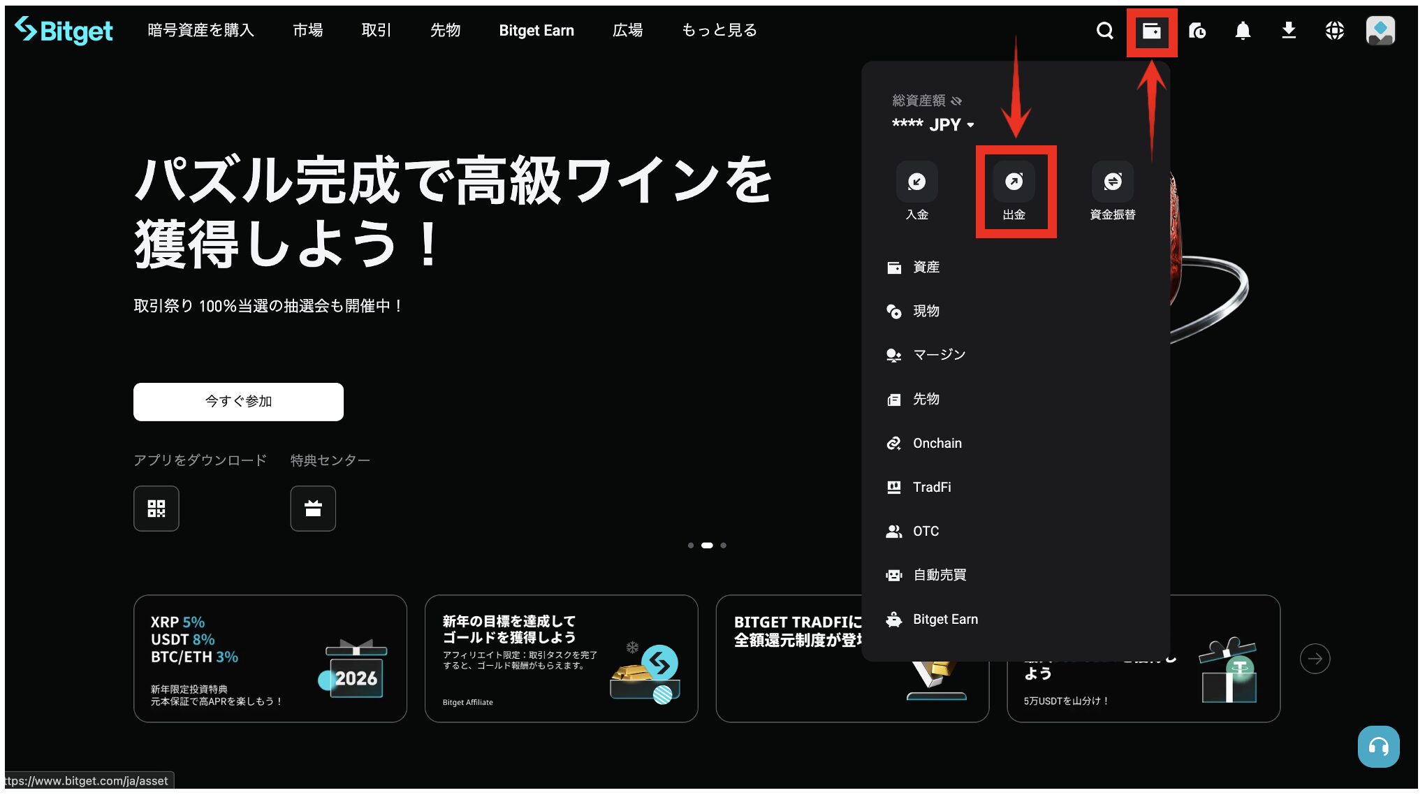 次は国内取引所ビットバンク(bitbank)へ出金していきましょう。