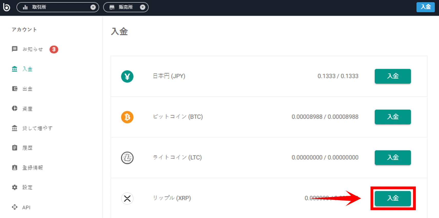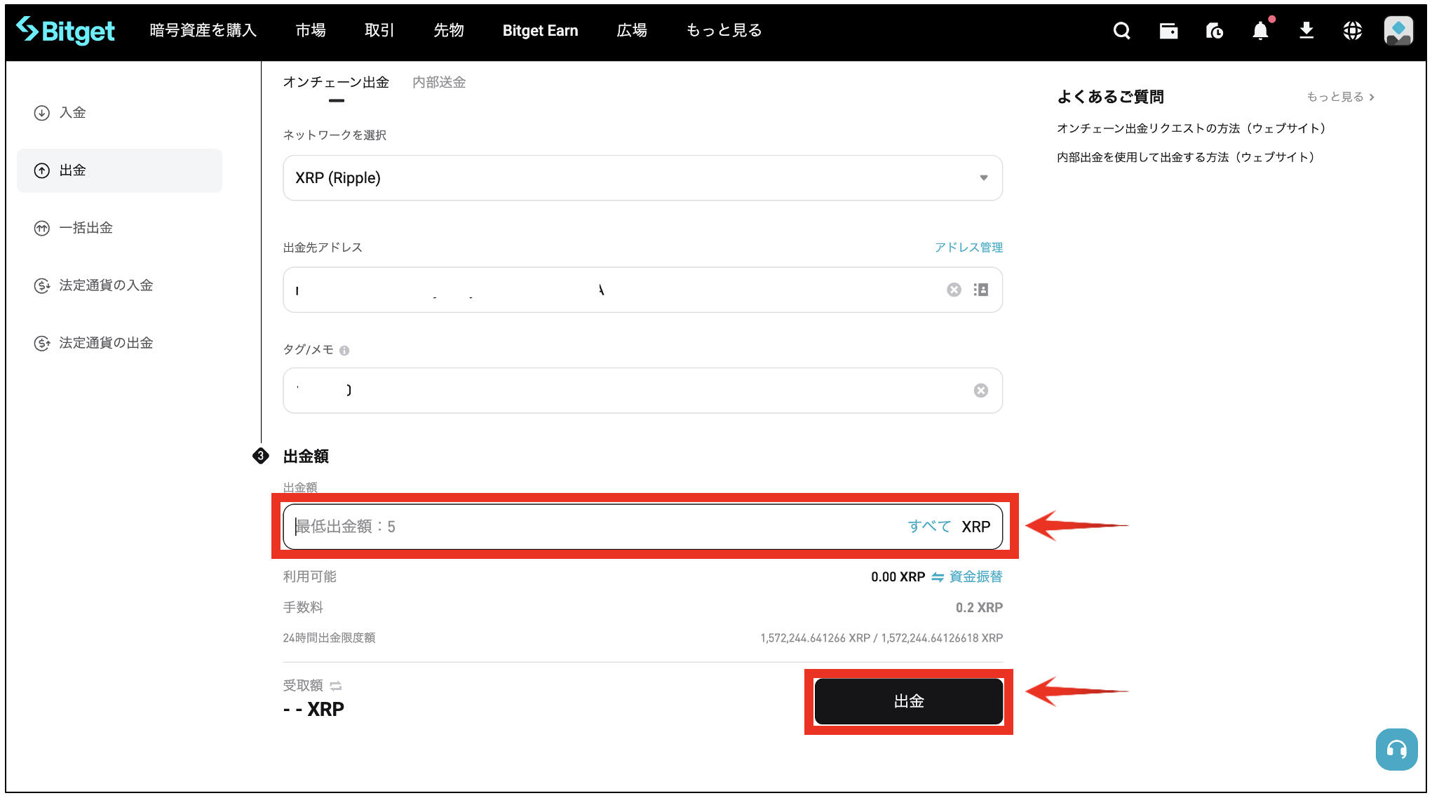 次は、国内取引所にXRPを送金(出金)する手順になります。